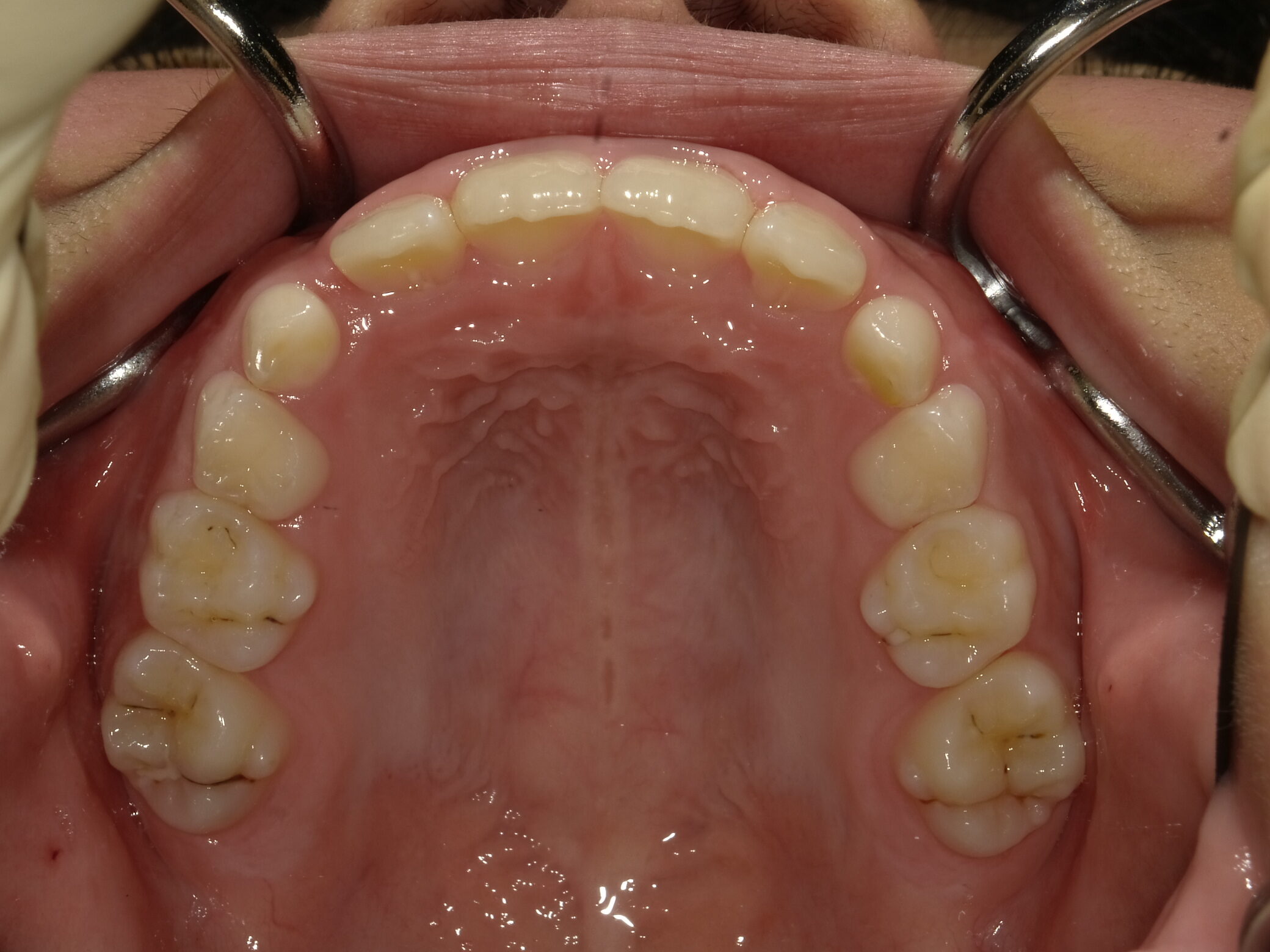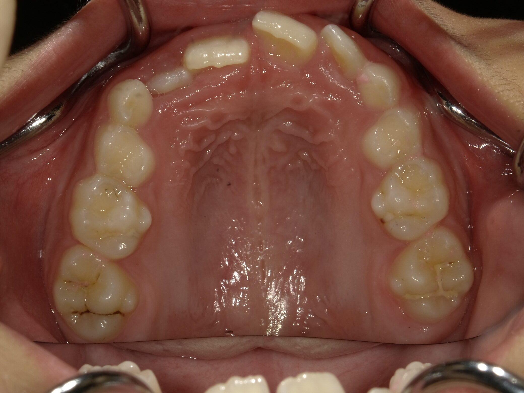 リスク・注意点 個々の歯の大きさに対して顎が小さく、歯が並ぶスペースが不足したために交叉咬合が生じています。これらを改善するために、幅の狭搾している歯列を側方に拡大した後、前歯を排列しました。 歯の動き方には個人差があり、予想された治療期間が延長する可能性があります。